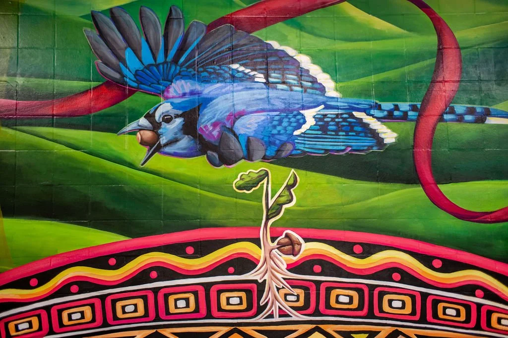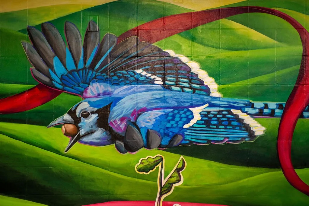 200 sq ft acrylic on polytab mural co-designed and co-created by seniors from the class of ‘24.